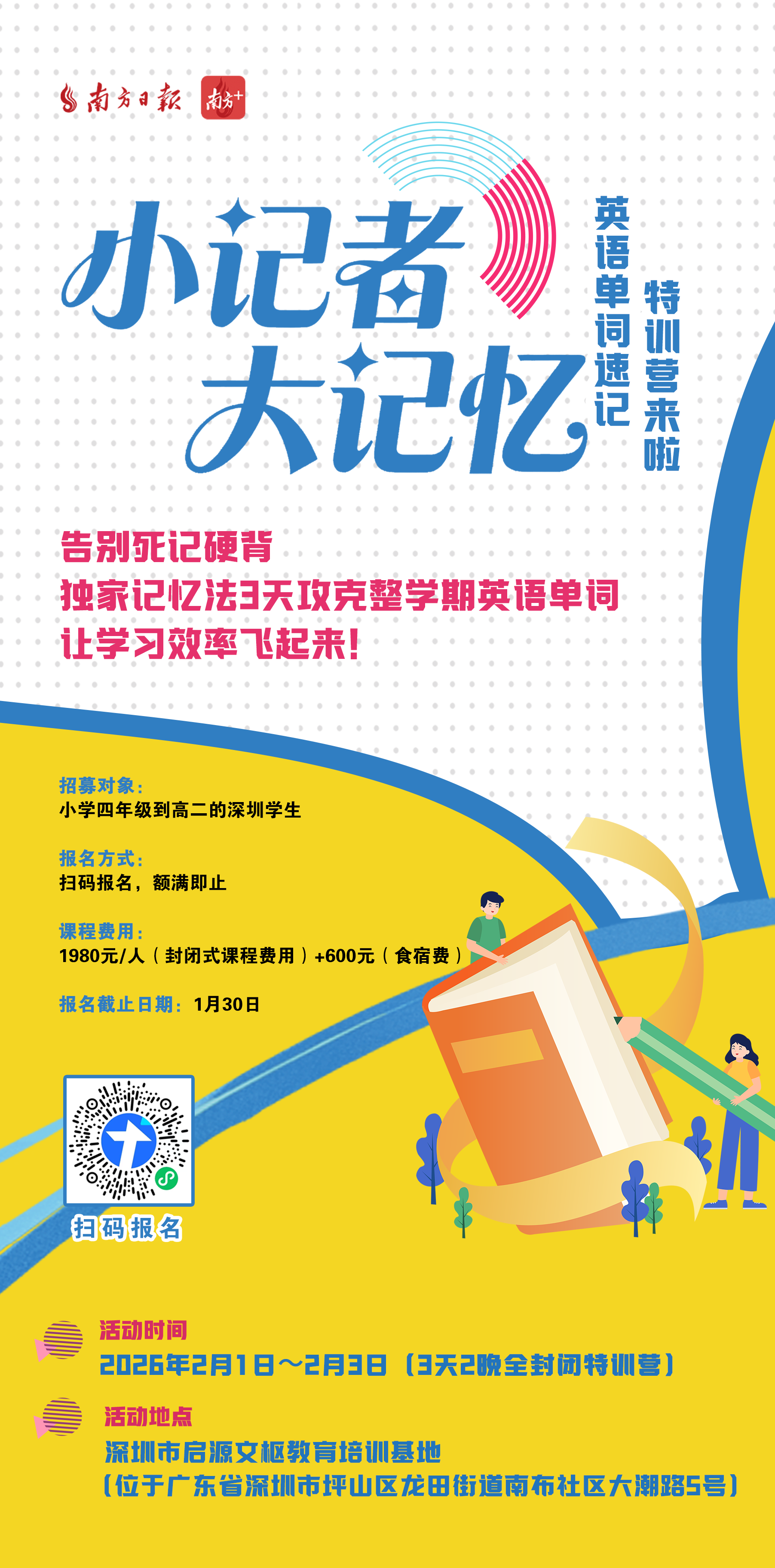 还在为英语单词记不住、背得慢而烦恼吗?这个寒假,南方+携手普普文化和中腾智教为深圳学子打造的“英语单词速记特训营”即将开启!作为国家体育总局全国青体联“全国青少年益智运动大会”执行方,中腾智教结合多年经验研发了训练营课程,旨在通过系统化、趣味化的训练,帮助学生突破记忆瓶颈,建立可持续的单词学习体系。