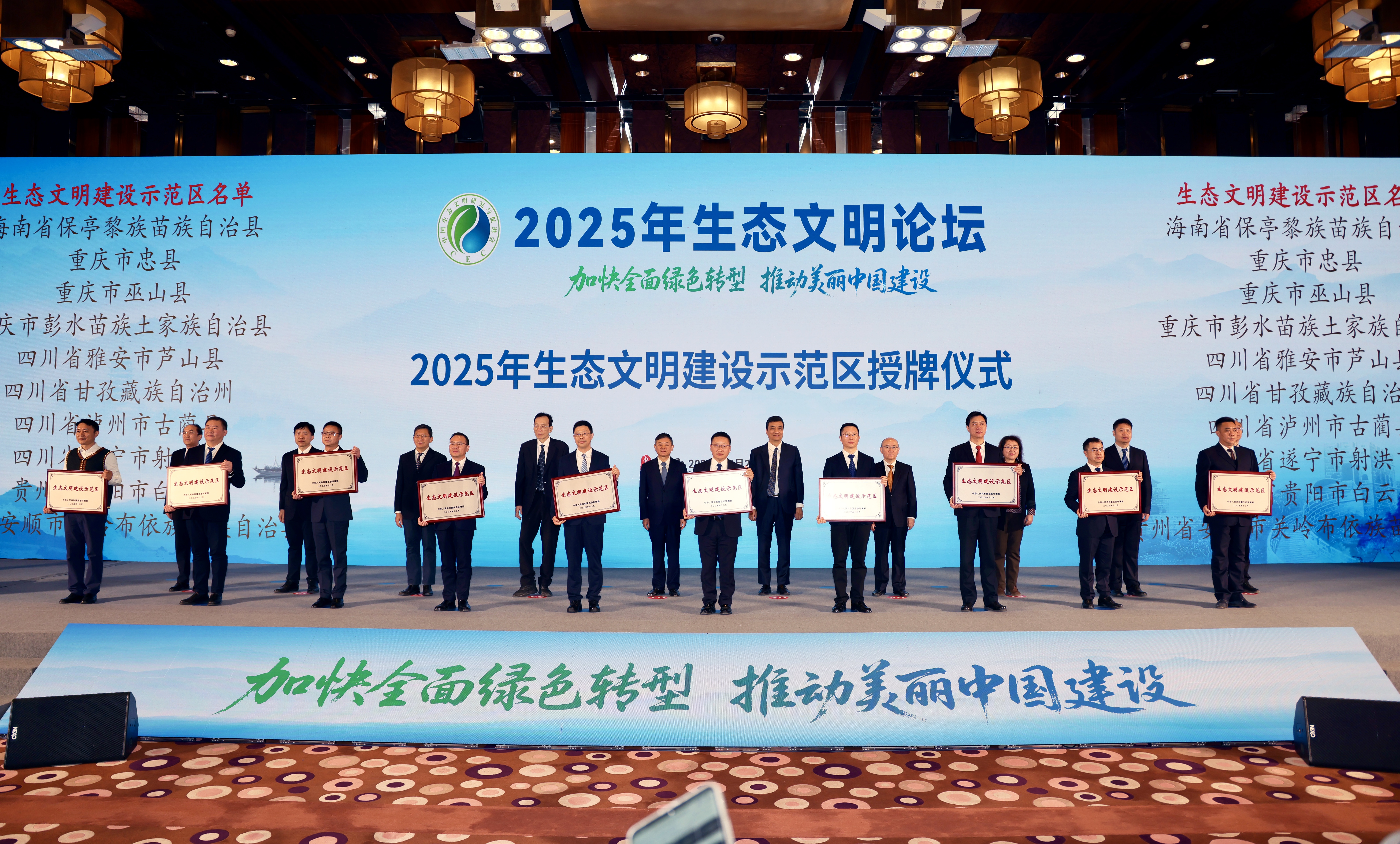 12月25日,第八批全国生态文明示范区和“绿水青山就是金山银山”实践创新基地命名仪式在北京举行,四川遂宁射洪市成功创建国家级生态文明示范区,现场接受授牌。